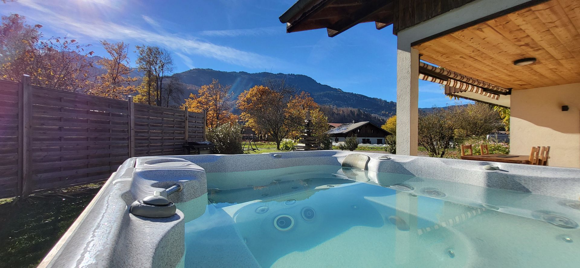 L'Aval est en Rez de jardin avec terrasse et Jacuzzi dédié. 6/8 pers